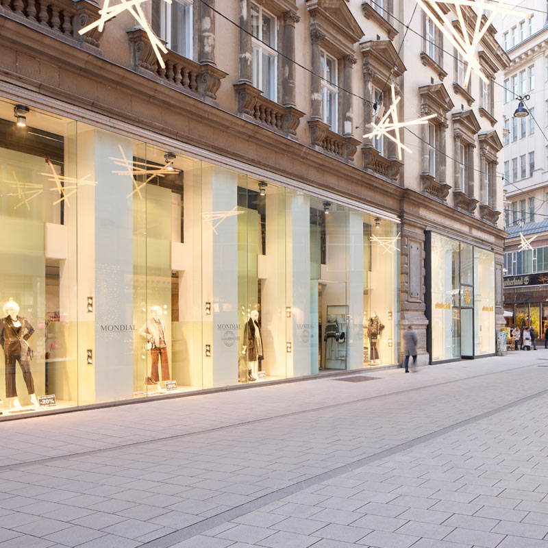 Insgesamt rund 8.650 m2 Steine aus dem innovativen Werkstoff Beton machen die Fußgängerzone Wiener Straße und ausgewählte Seitengassen zu attraktiven Einkaufs- und Flaniermeilen.