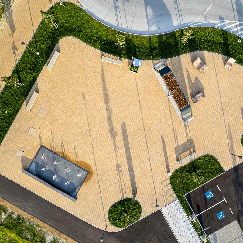 Flächenbefestigung mit unterschiedlichen Formaten und einheitlicher Farbgebung