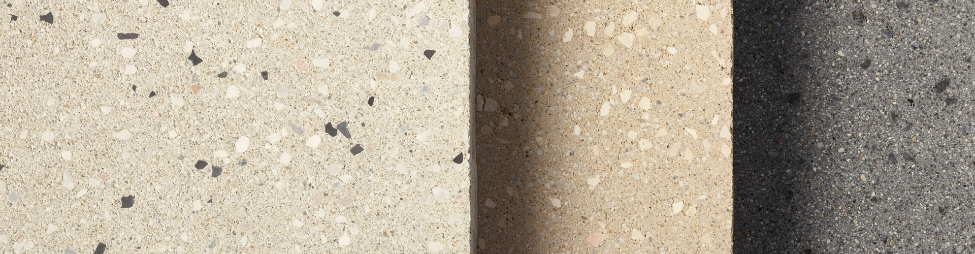 Von Granit über Marmor, Dolomit, Basalt bis hin zu Porphyr stehen eine Vielzahl an Körnungen von 4 mm bis 16 mm zur Verfügung. Je nach Zusammensetzung von Betonfarbe, Kornfarbe, -größe und -anteil ergibt sich eine Terrazzo-ähnliche Optik, die sich durch zurückhaltende Eleganz oder mutige Farbkomposition auszeichnet.